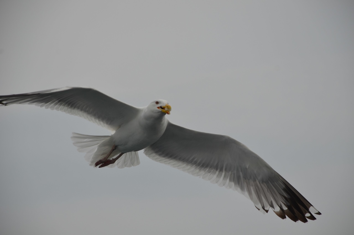 - Чайки летят за кораблем и ловят хлеб